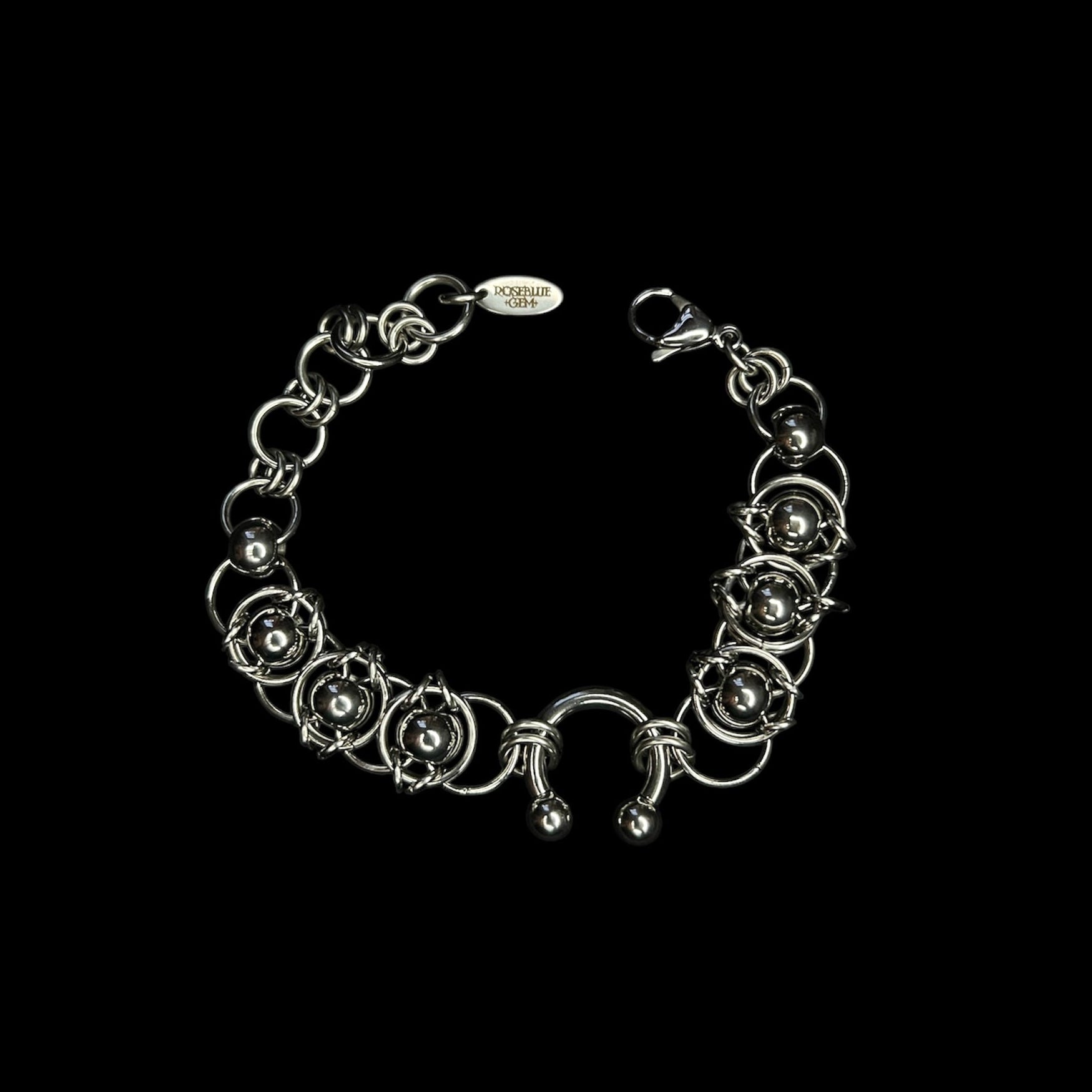 Add a unique touch to your look with our Septum Bracelet. This stainless steel bracelet features an 8 gauge septum piercing adorned by a beaded celtic visions weave.